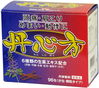 【送料・手数料無料!】頭痛・肩こり・めまい・動悸に★丹心方(たんしんほう) 96包【第2類医薬品】 価格: 12,600円 レビュー評価: 0.0 レビュー数:0 +商品説明+ 商品名 丹心方 (タンシンホウ) 【第2類医薬品】 商品特徴 丹心方は,漢方でいわれる「?血・血滞」を改善するものです.中年以降または血圧が高く,頭痛,頭重,肩こり,めまい,動悸などの症状のある方の血行を改善し,効果をもたらします. 効能・効果 中年以降又は高血圧傾向のあるものの次の諸症:頭痛、頭重、肩こり、めまい、動悸。 効能関連 注意 本剤は生薬を原料としていますので,製品により多少色が異なることがありますが,効能・効果にかわりはありません 内容量 96包 成分・分量 1日量3包(1包2g)中、二号方エキス・・・4.5g 成分分量 センキュウ2.250g シャクヤ Supported by 楽天ウェブサービス |